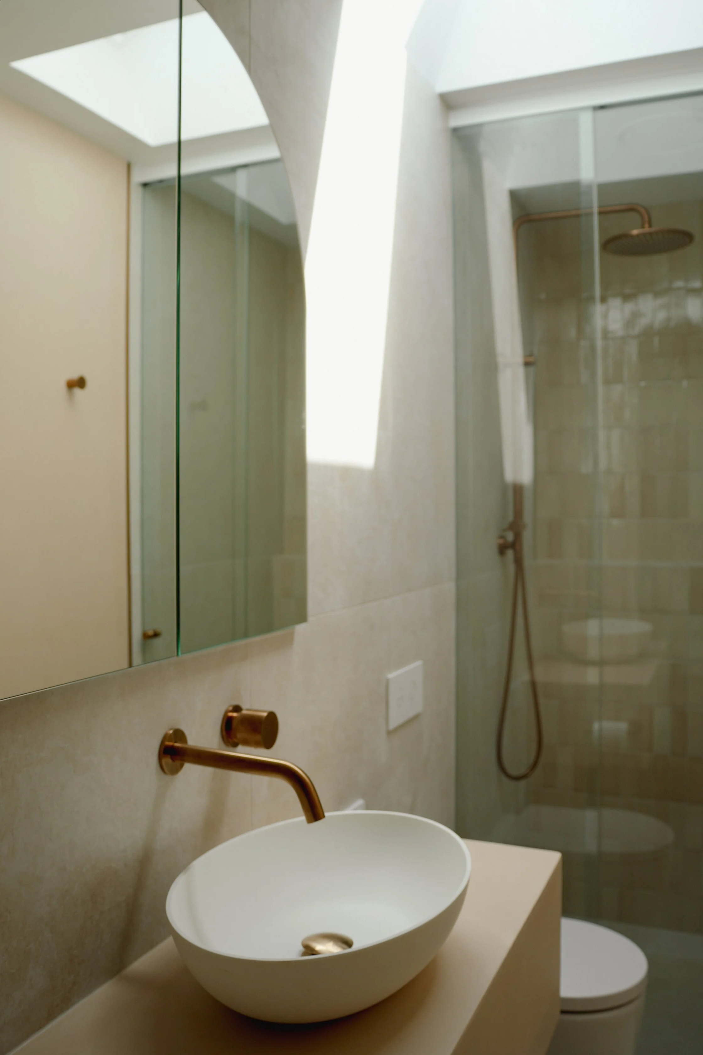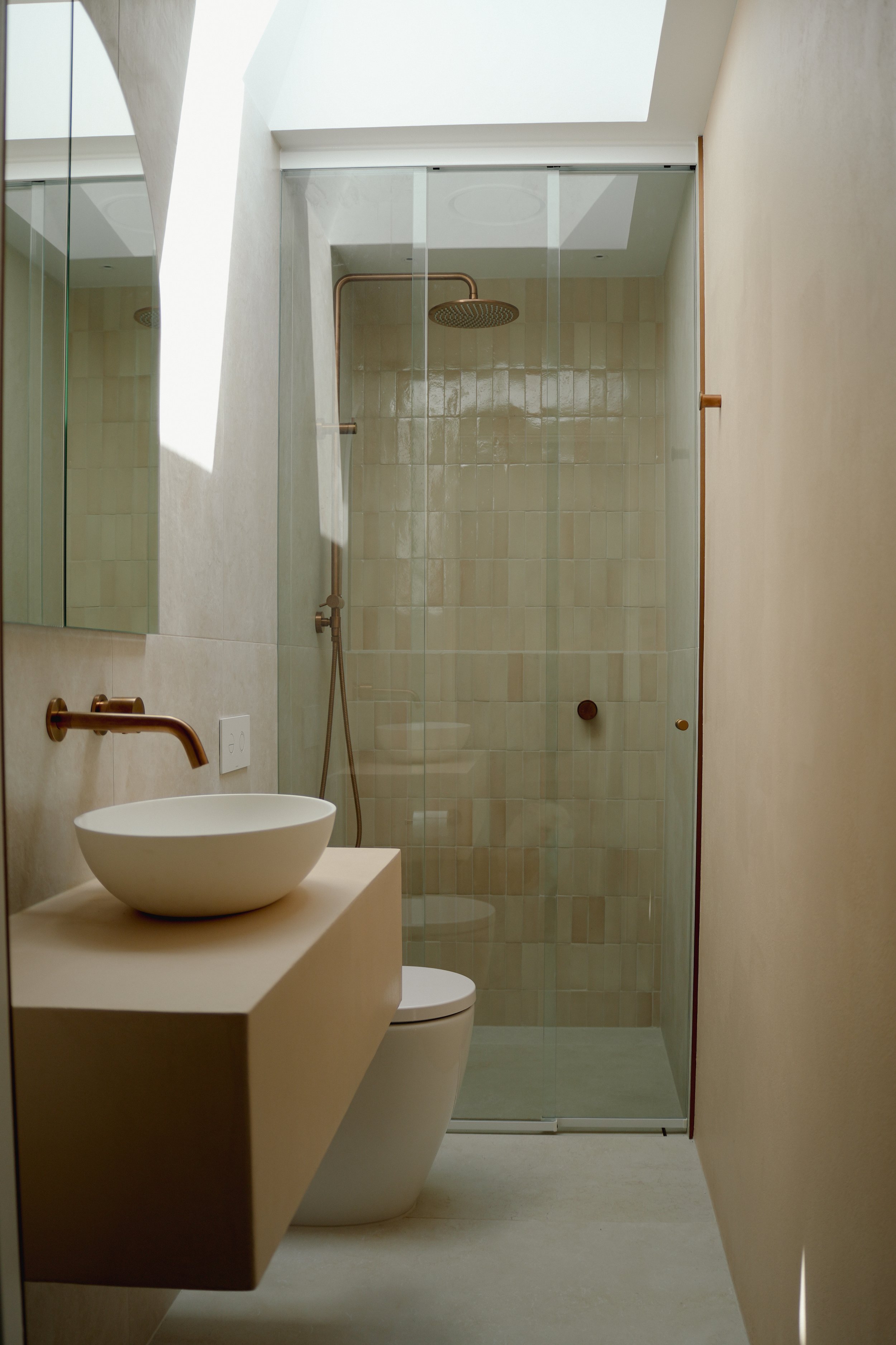 Beautifully designed ensuite inspired by the Mediterranean. Warm textures, natural tones and a space designed to make every day feel like your on holidays.
